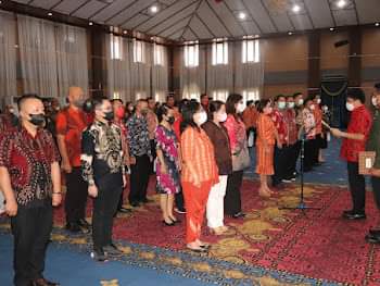 Turut hadir Ketua TP PKK Kota Manado, Irene Angouw-Pinontoan, Sekretaris Daerah Kota Manado, Dr Micler Lakat dan para pengurus yang dilantik. (ndy)