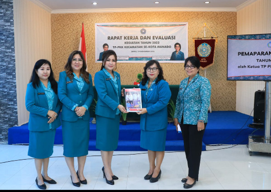 Kegiatan tersebut kemudian dilanjutkan dengan rapat kerja evaluasi kegiatan tahun 2022 TP PKK Kecamatan Se Kota Manado.