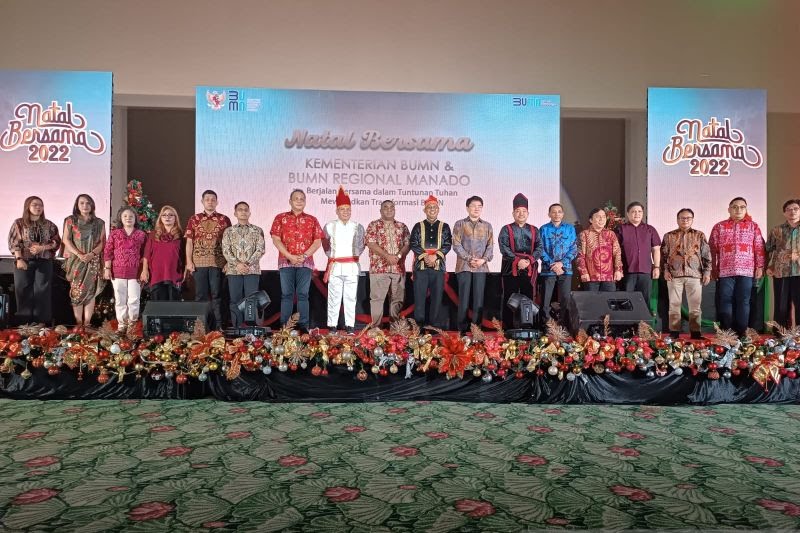Perayaan Natal BUMN di Manado dihadiri Wali Kota Manado Andrei Angouw, para pimpinan BUMN di Manado, tokoh-tokoh agama serta undangan lainnya. (team)