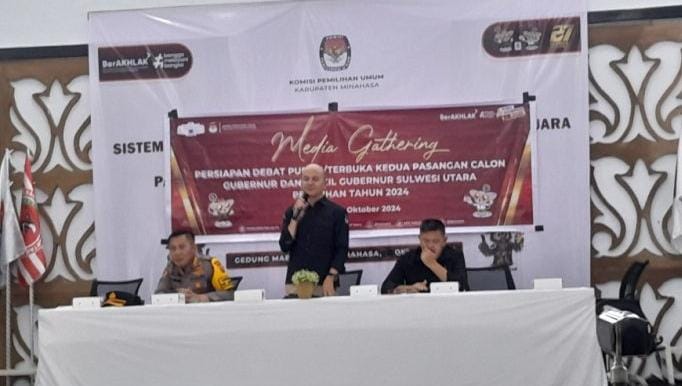 HARIAN SULUT NEWS, MINAHASA – Debat Publik ke II yang digelar Rabu (23/10/2024) oleh Komisi Pemilihan Umum (KPU) Provinsi Sulut di Wale Ne Tou, Tondano, Kabupaten Minahasa siap digelar. Hal ini dikatakan Komisioner KPU Provinsi Sulut, Meidy Tinangon saat menggelar Media Gathering Persiapan Debat Publik Kedua Pasang Calon Gubernur dan Wakil Gubernur Sulut.