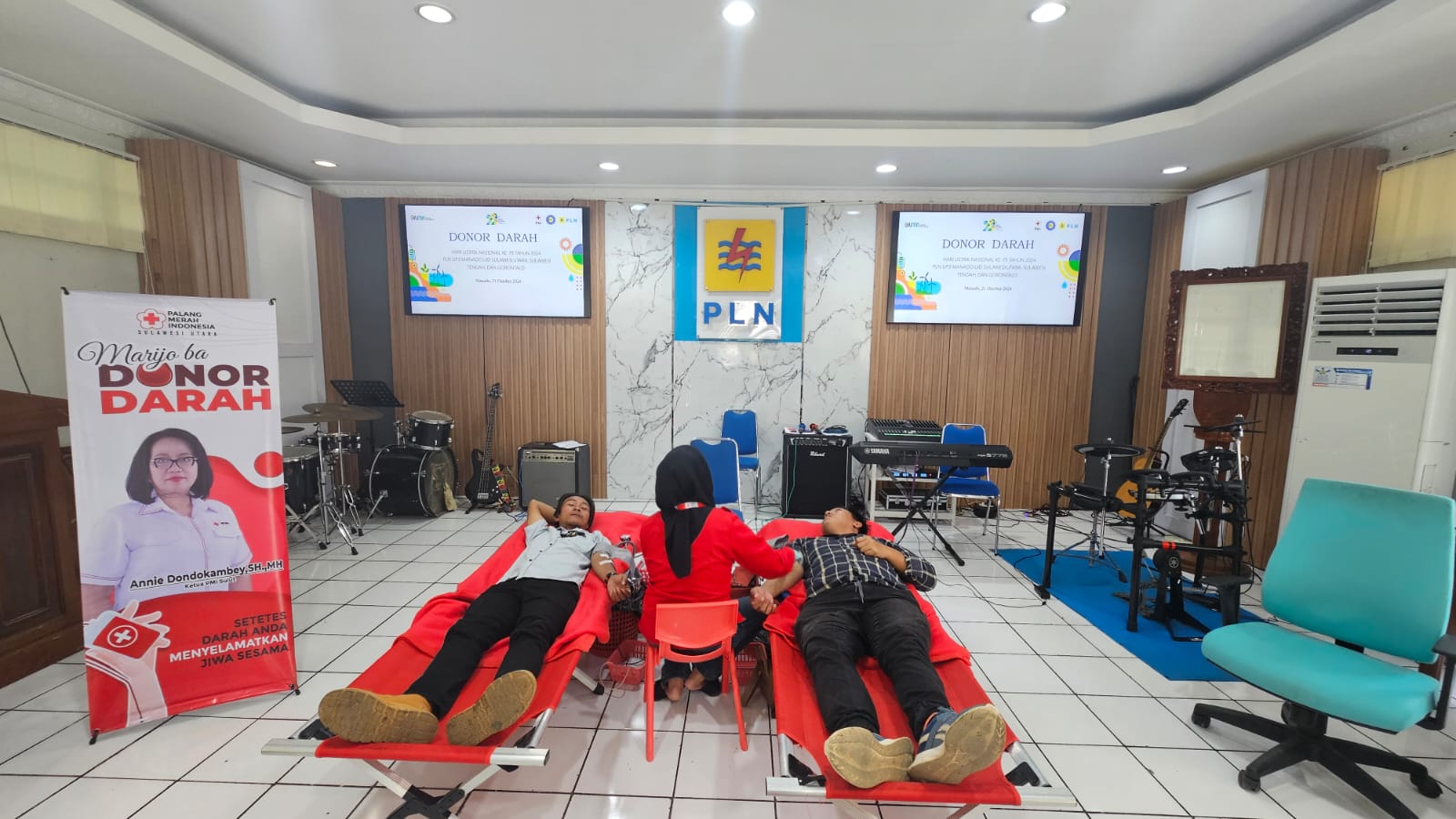 HSN,MANADO – PT PLN (Persero) Unit Pelaksana Pelayanan Pelanggan (UP3) Manado bersama dengan Dewan Pimpinan Daerah Serikat Pekerja Unit Induk Distribusi (UID) Sulawesi Utara, Tengah, dan Gorontalo (Suluttenggo) sukses menyelenggarakan kegiatan sosial donor darah sebagai bagian dari perayaan Hari Listrik Nasional (HLN) ke-79.
