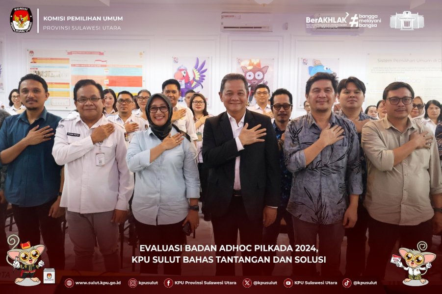 HarianSulutNews,MANADO – Pembentukan Badan Adhoc yang telah dilakukan sesuai dengan prosedur dan peraturan perundang-undangan yang berlaku, KPU Sulut menggelar Rapat Koordinasi Evaluasi Pembentukan dan Pelaksanaan Kerja Badan Adhoc Pilkada Tahun 2024 yang berlangsung di Aula Kantor KPU Sulut, Kamis (13/03).