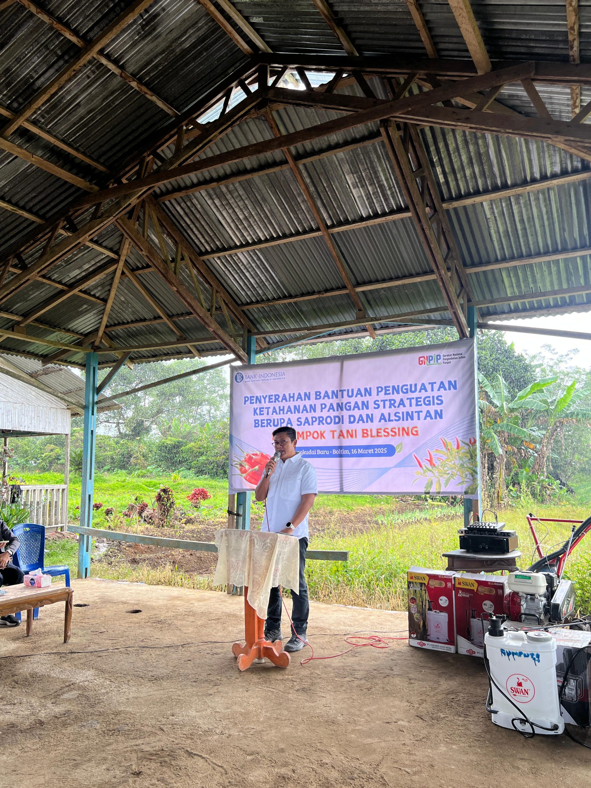 Bantuan ini diserahkan salam acara Penterahan Bantuan Penguatan Ketahanan Pangan Strategis Berupa Saprodi dan Alsintan di Desa Bongkudai Baru Kecamatam Moat Kabupaten Boltim, Minggu, (16/03/2025)
