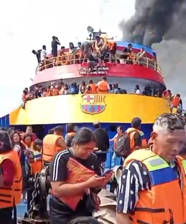 KM Barcelona 5 mengalami kebakakaran dalam perjalanan dari Talaud menuju Manado. Belu. Diketahui penyebab sehingga terjadinya kebakaran. (Rubby Worek)