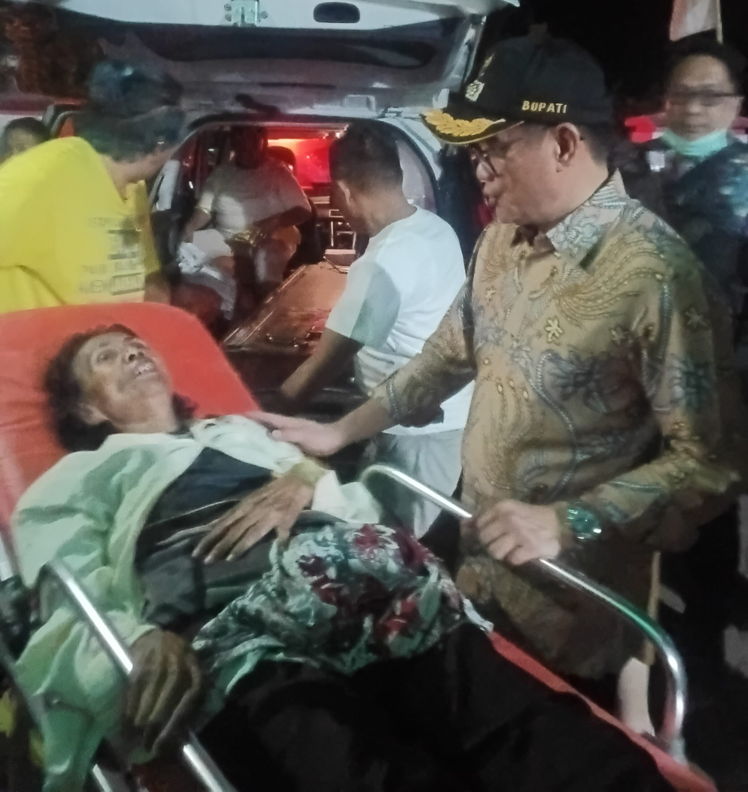 ” Salut dan terima kasih kepada Pak Bupati Joune Ganda yang turun langsung dalam proses evakuasi pemberian pelayanan medis dan membagikan makanan siap saji, air mineral dan pakaian kepada para korban dan keluarga,” tukas Gubernur Yulius.