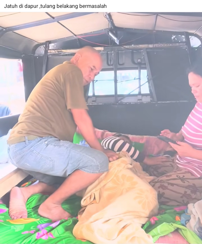 Seorang ibu yang jatuh, harus dirawat di atas mobil. Foto. Tangkapan layar R.M.
