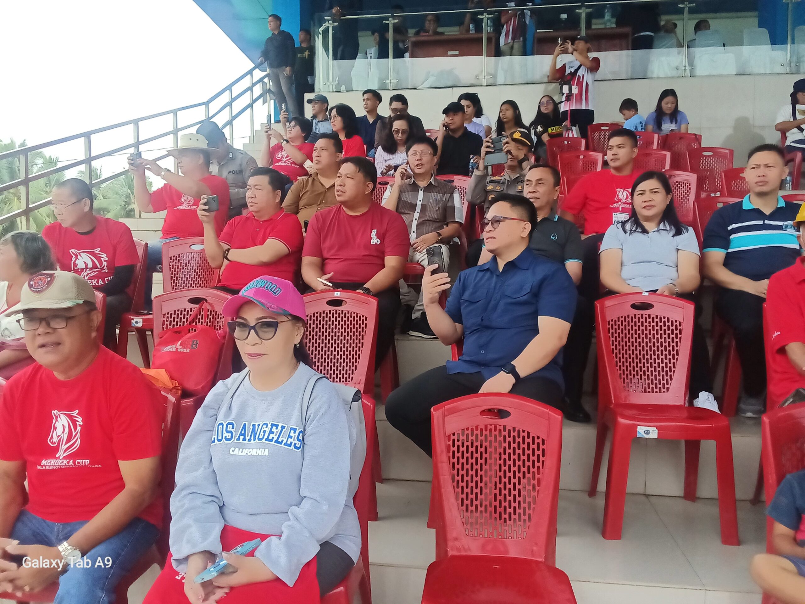 Bupati Minut Joune Ganda terlihat sangat antusias dan bersemangat menyaksikan Kejuaraan Merdeka Cup Piala Bupati Minut ini.