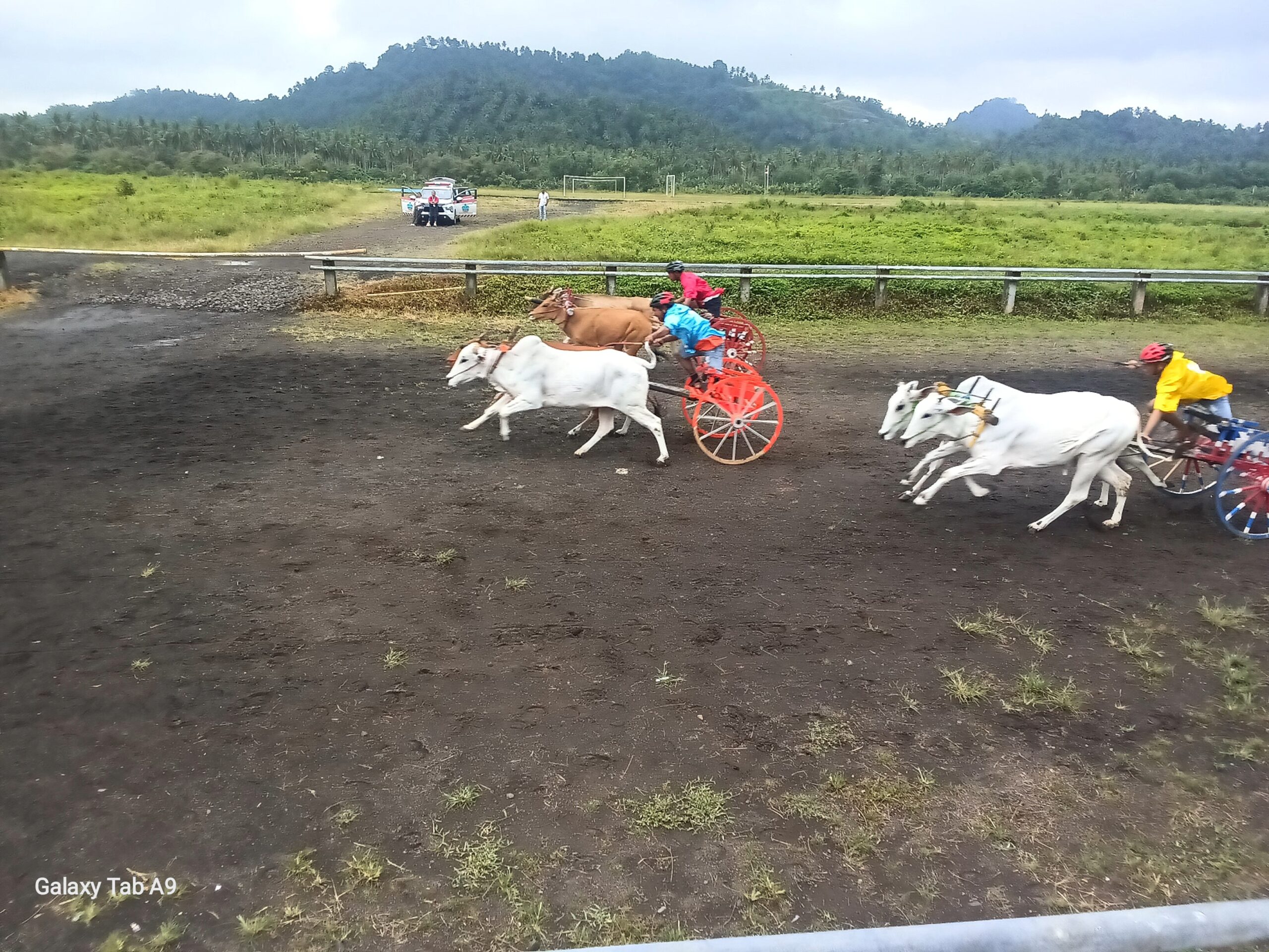 Sebelum race pertarungan pacuan kuda digelar roda sapi pacu dan Bendi Kalaper.