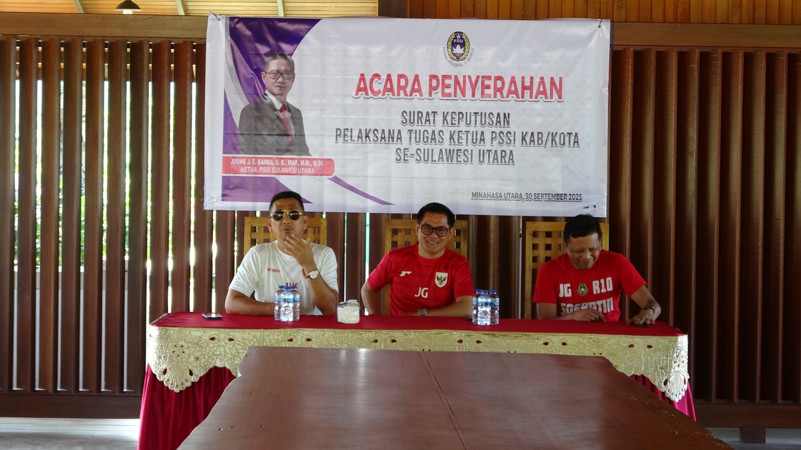 SK Plt ini diserahkan oleh Joune Ganda didampingi oleh Sekretaris Asprov PSSI Sulut Vendry Rorimpandey dan Wakil Ketua Hengky Kawalo, Kadispora Minut serta pengurus PSSI Sulut lainnya, Selasa(30/10/2025) di Villa Rae Desa Kaima.