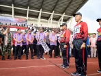 HSN,MINAHASA – Gubernur Sulut Olly Dondokambey melepas peserta lomba gerak jalan usai Ibadah Agung di Stadion Maesa Tondano, Lomba Gerak Jalan mengawali