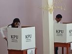 Joune Ganda Didampingi Isteri Tercinta Rizya Ganda Davega Gunakan Hak Pilih di TPS Tiga Desa Kaima